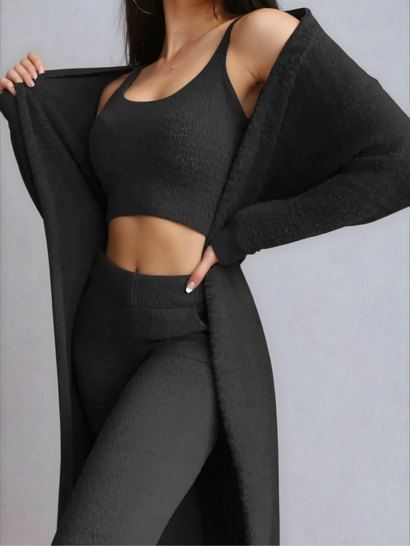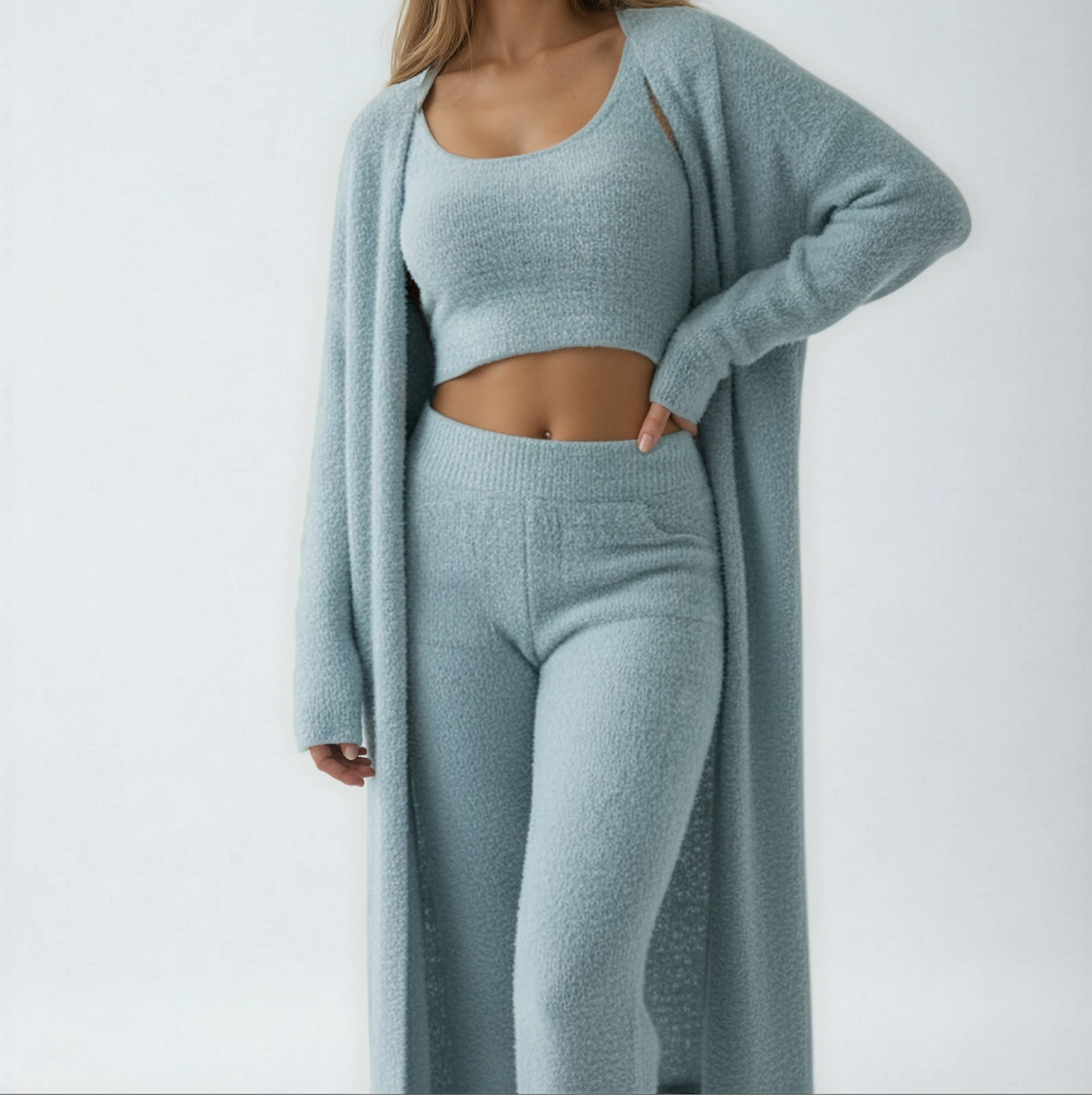 自宅でのリラックスタイム、ちょっとした外出、旅行中の快適さまで——このセットひとつで、冬中ずっと“コージー×シック”な装いを実現。