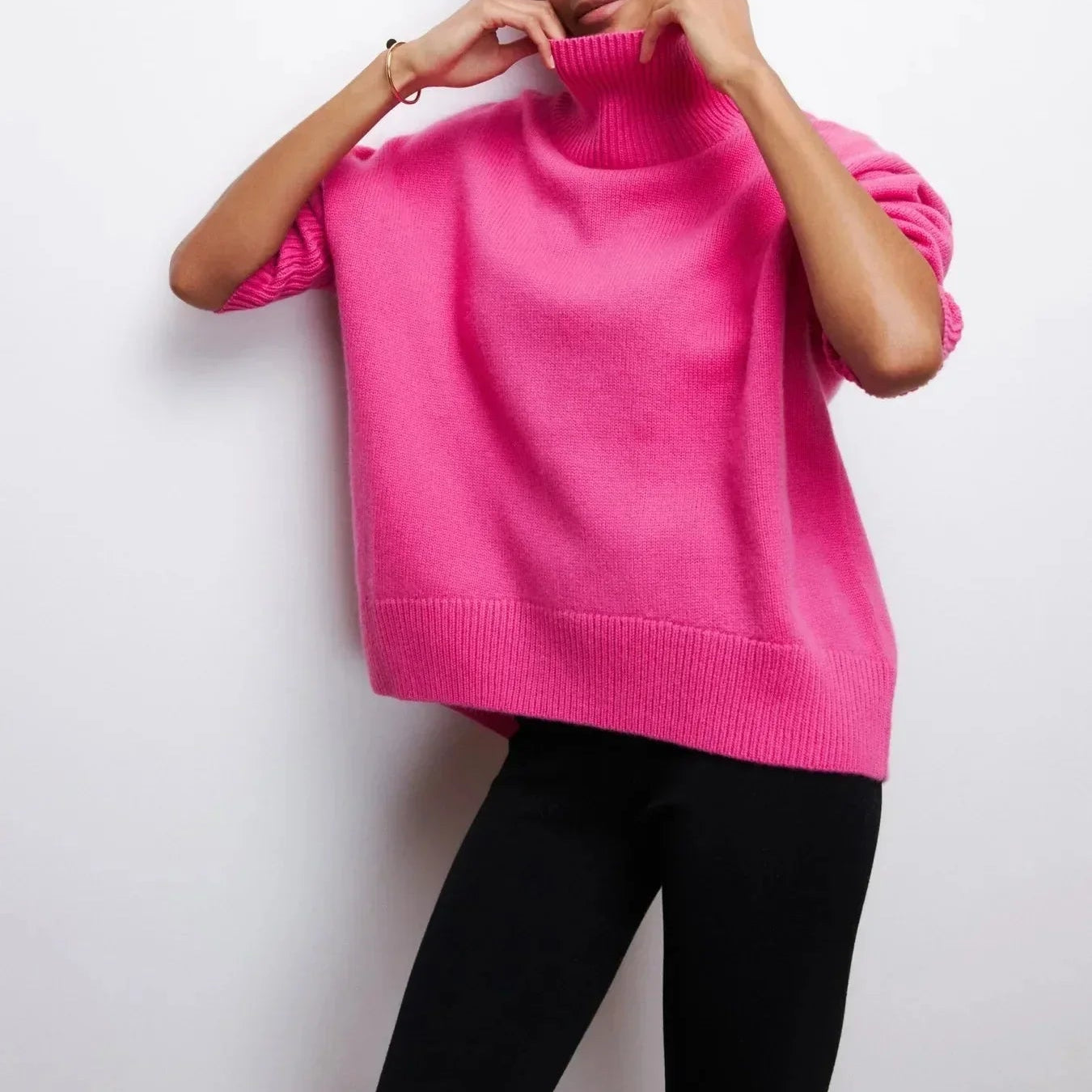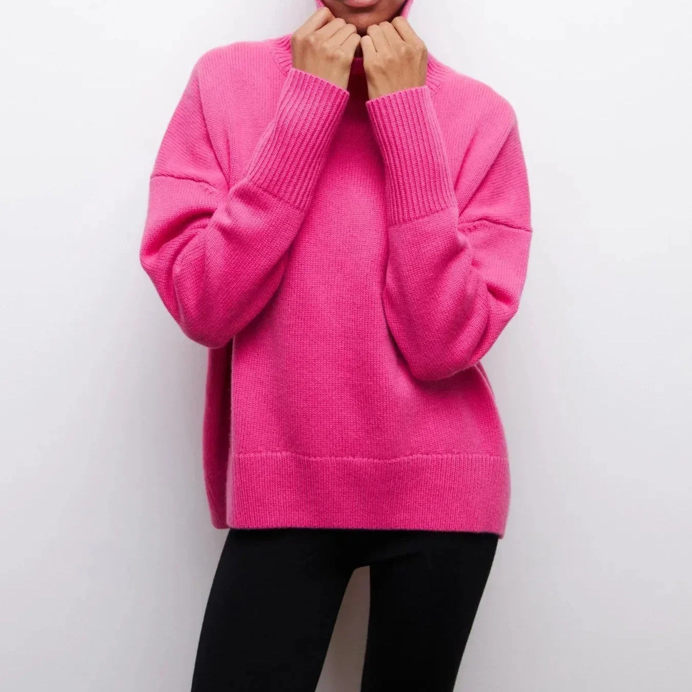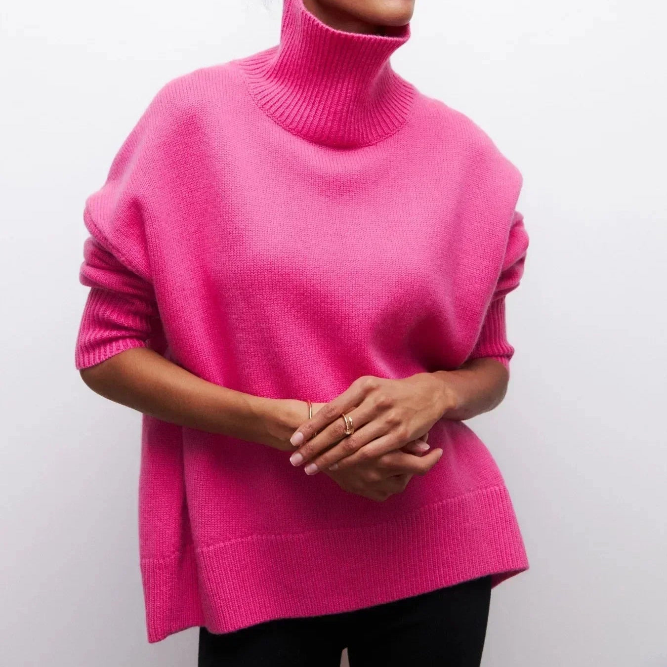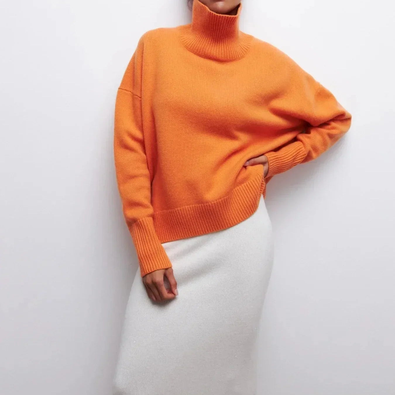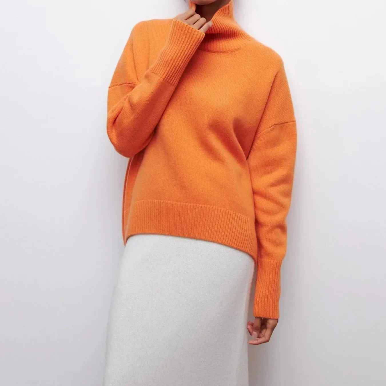 柔らかなリブニットとリラックスしたシルエットが、重ね着にも一枚でも美しく決まるタートルネックセーターです。